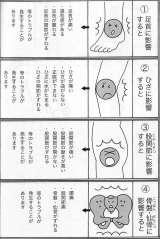 中心軸がずれてしまうと、体のさまざまな関節に異常が起きてしまうのです。